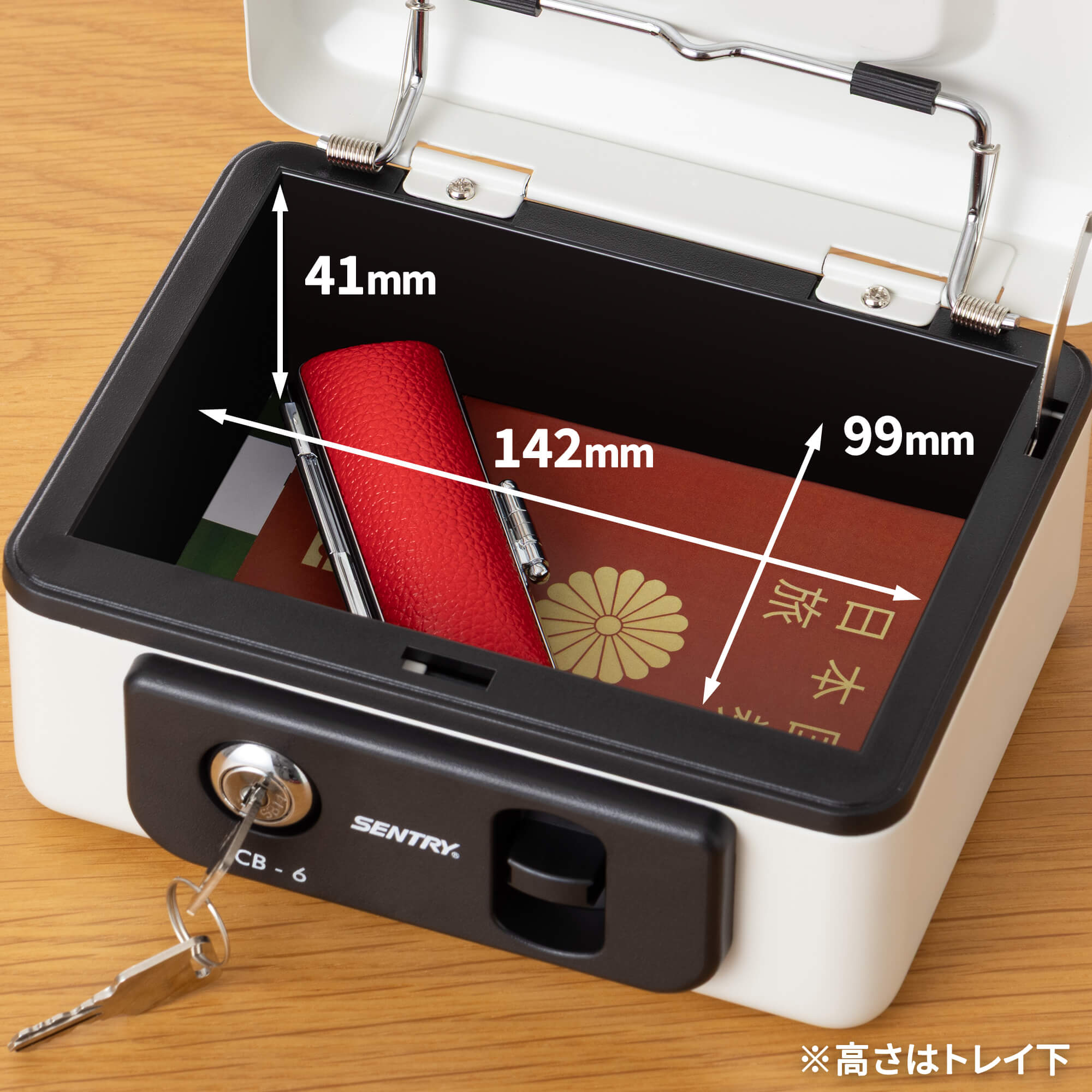 トレイの下はフリースペースとなっており、通帳や書類などの保管に最適です。