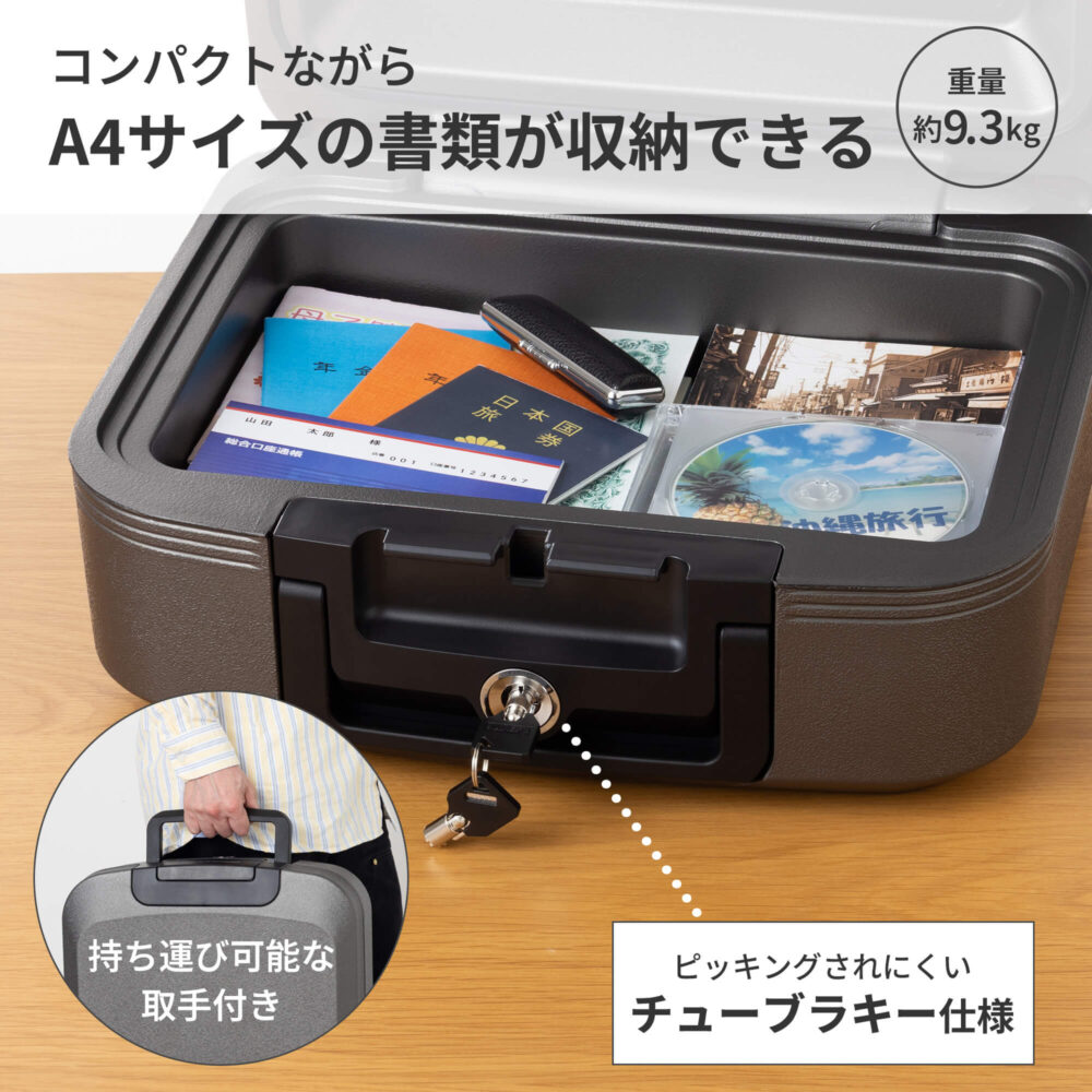 火災・水害の両方から守る高い性能を備えながら、持ち運びが可能なコンパクトサイズ・重さなので、手軽に防災・セキュリティ対策をおこないたい方や、一人に1台のパーソナル保管庫として、多くの皆様に利用いただけます。