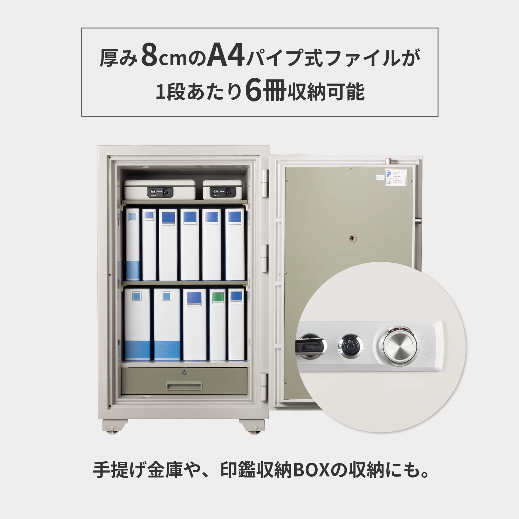 豊富なサイズバリエーションとロックタイプもテンキー式 / 設定変更可能ダイヤル式から選べる業務用金庫。JIS認定およびSP(スウェーデン国立技術研究所)認定製品。受注生産限定。
