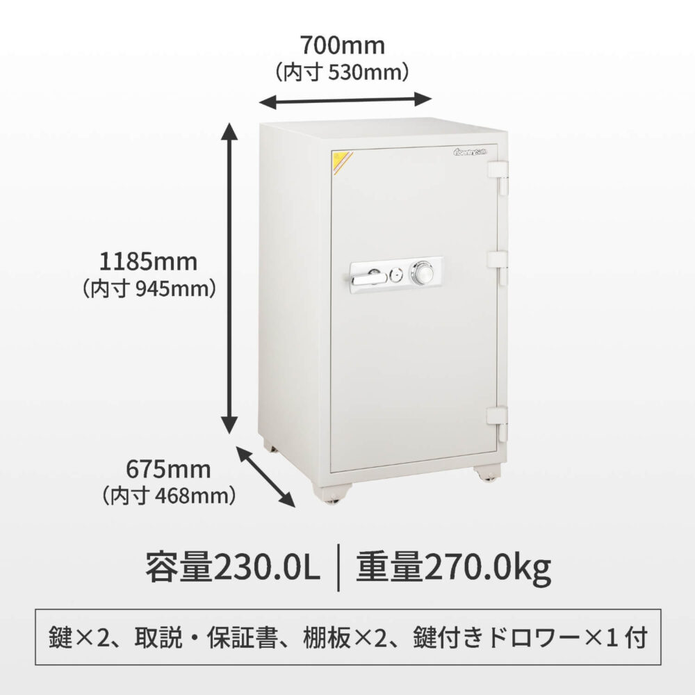 付属品 鍵×2、取扱説明書・保証書、棚板×2、鍵付きドロワー×1