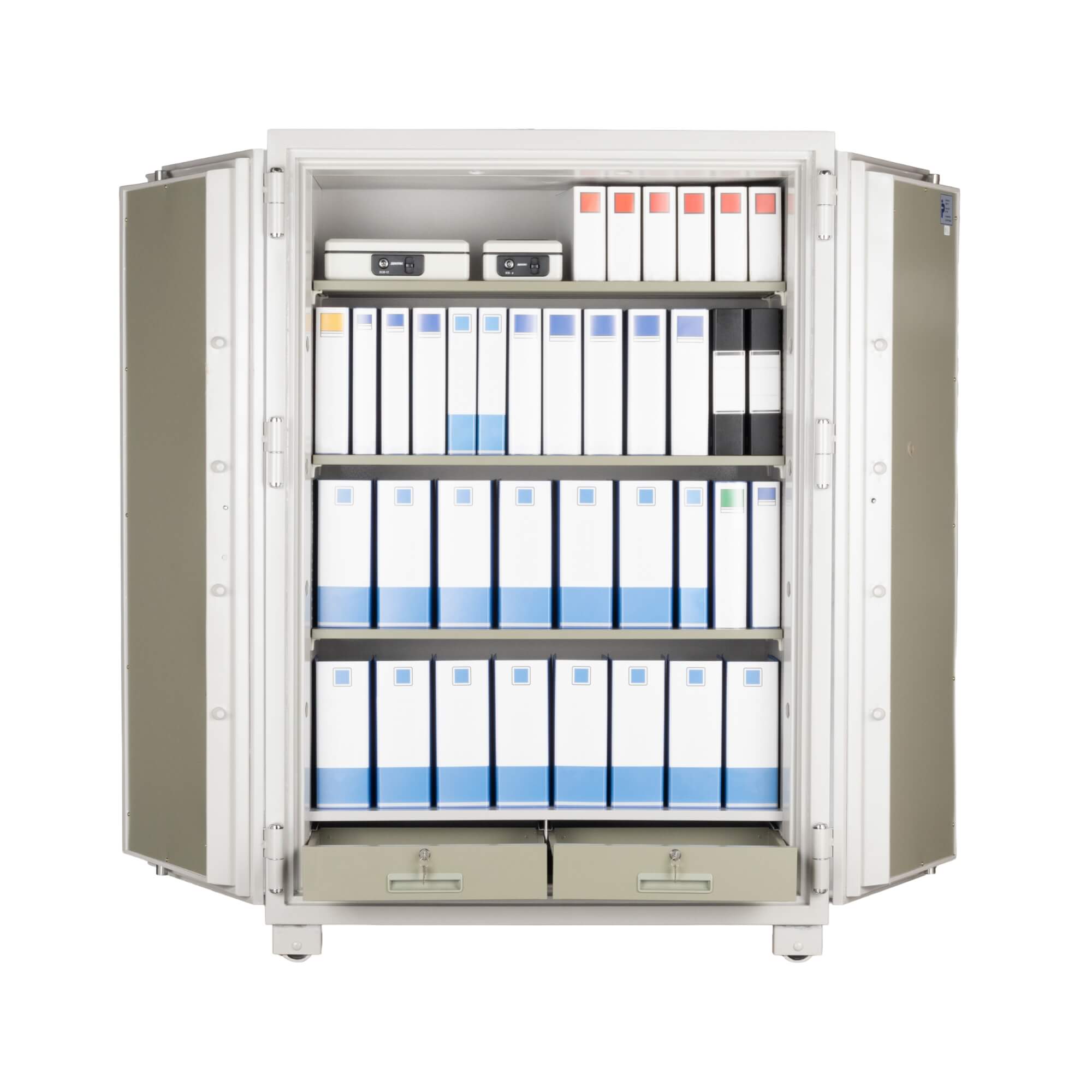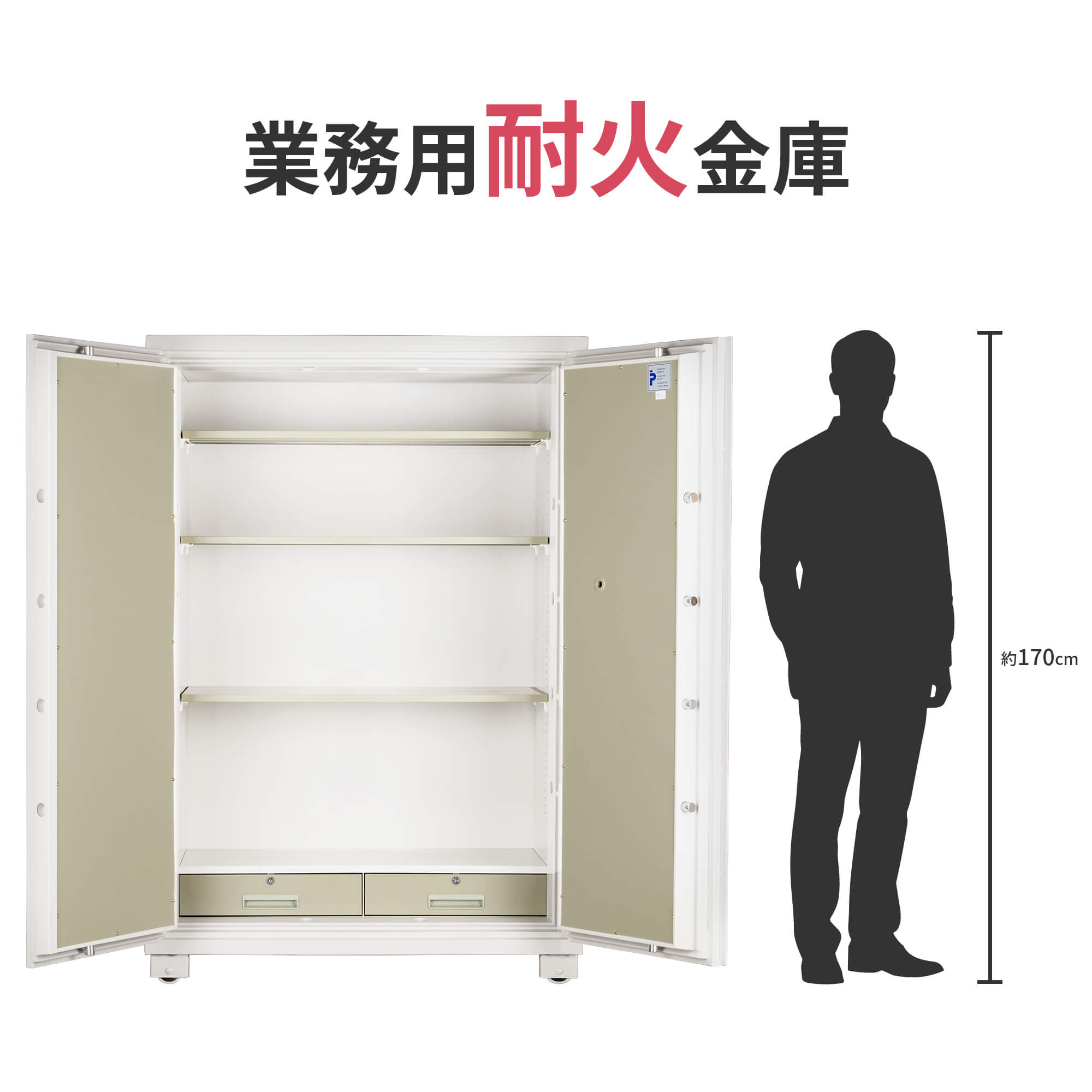豊富なサイズバリエーションとロックタイプもテンキー式 / 設定変更可能ダイヤル式から選べる業務用金庫。JIS認定およびSP(スウェーデン国立技術研究所)認定製品。両開き扉で受注生産限定。
