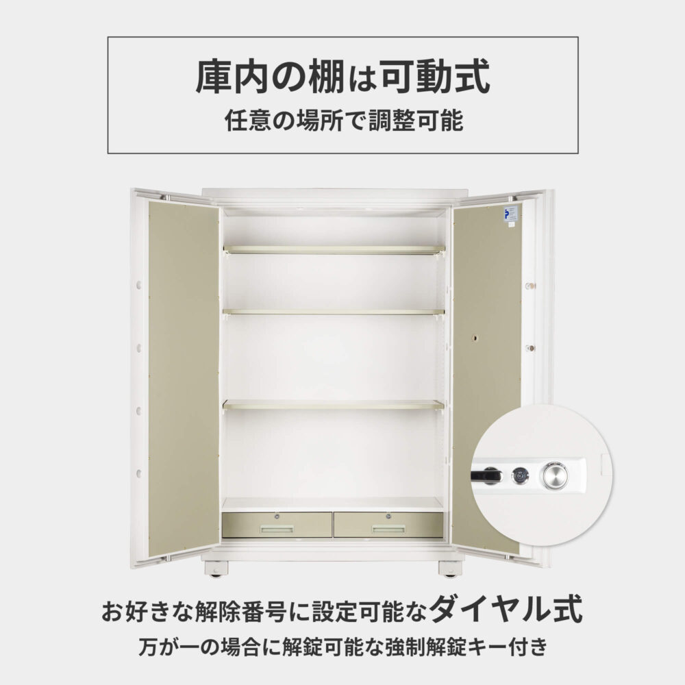 | 付属品 | 鍵×2、取扱説明書・保証書、棚板×3、鍵付きドロワー×2 |