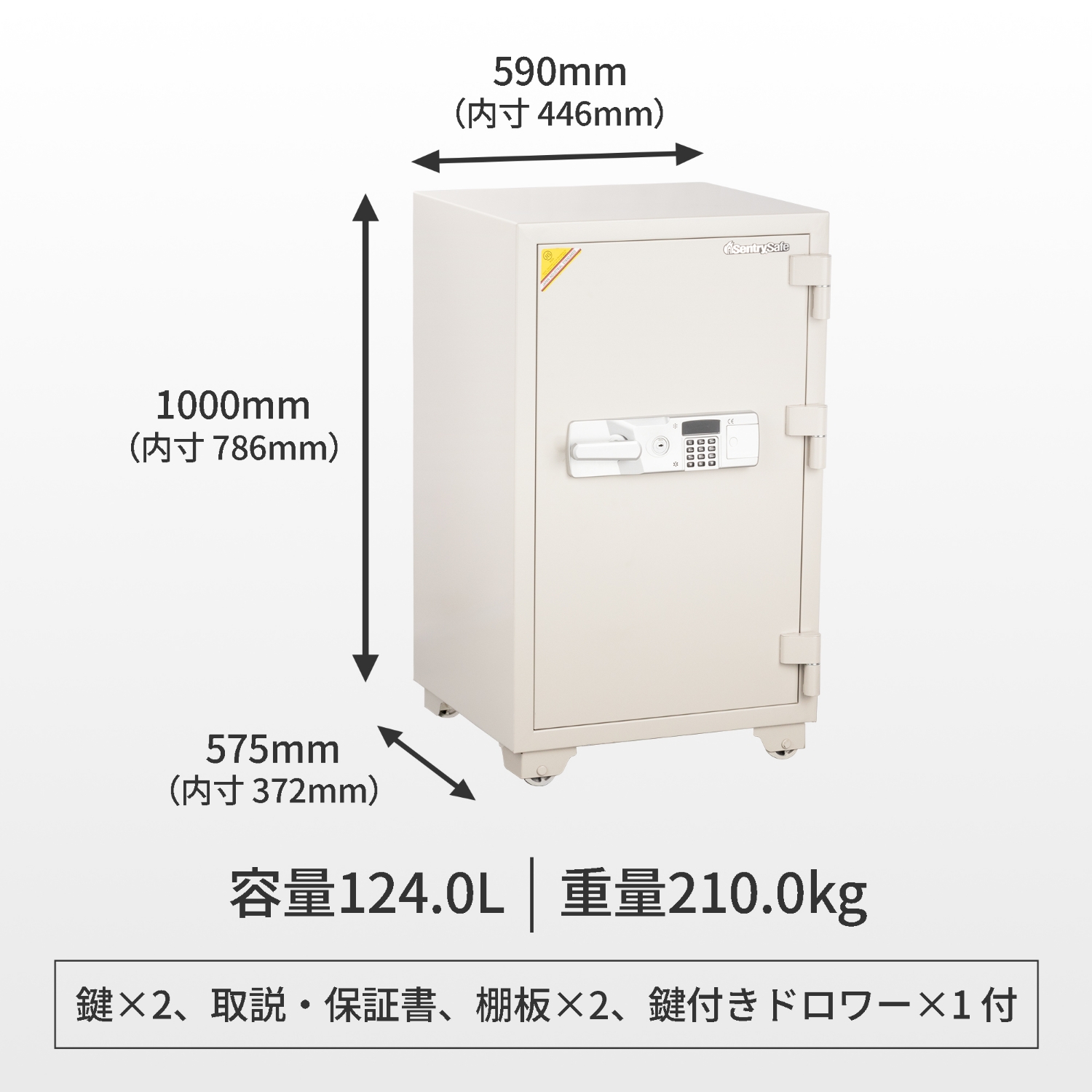 付属品 鍵×2、取扱説明書・保証書、棚板×2、鍵付きドロワー×1