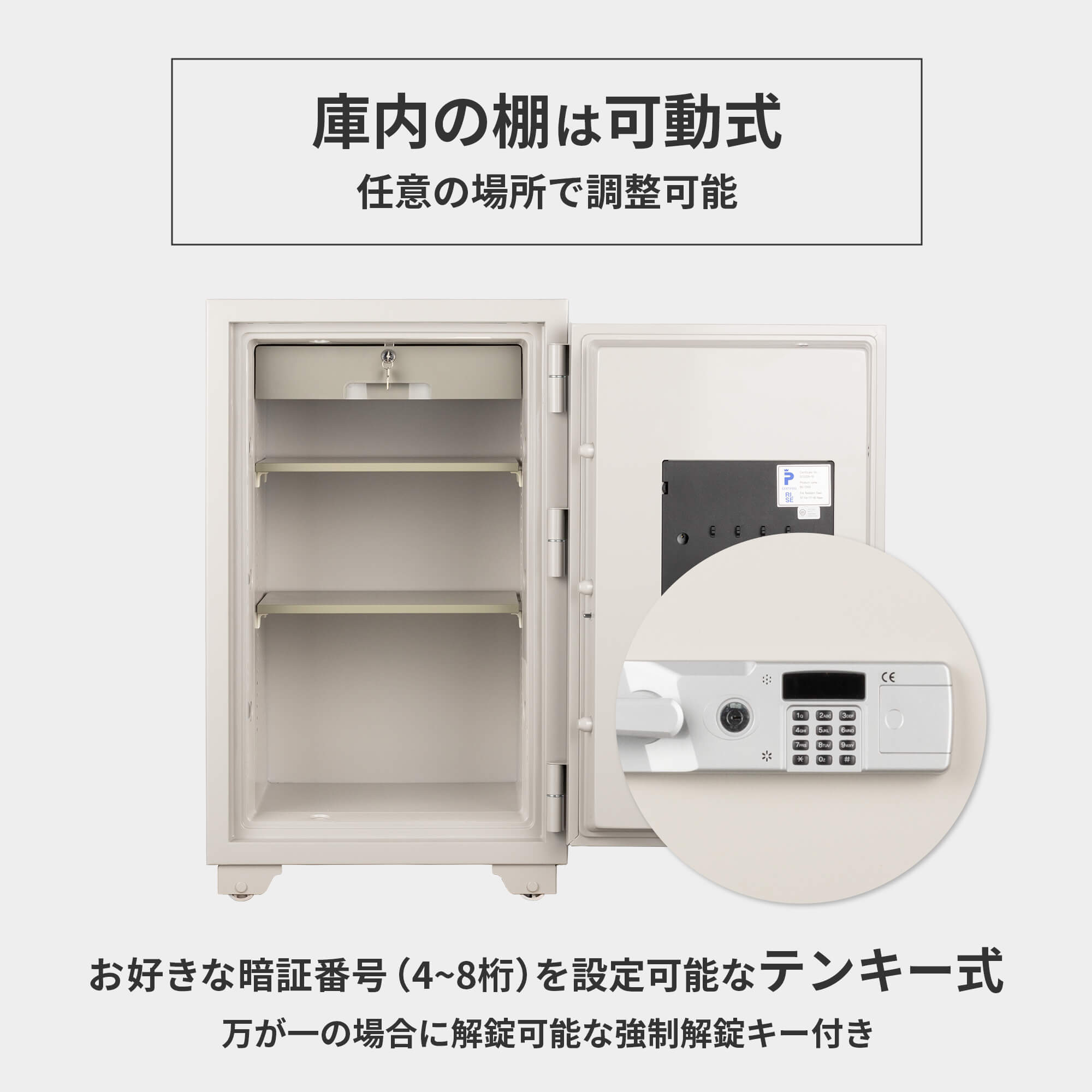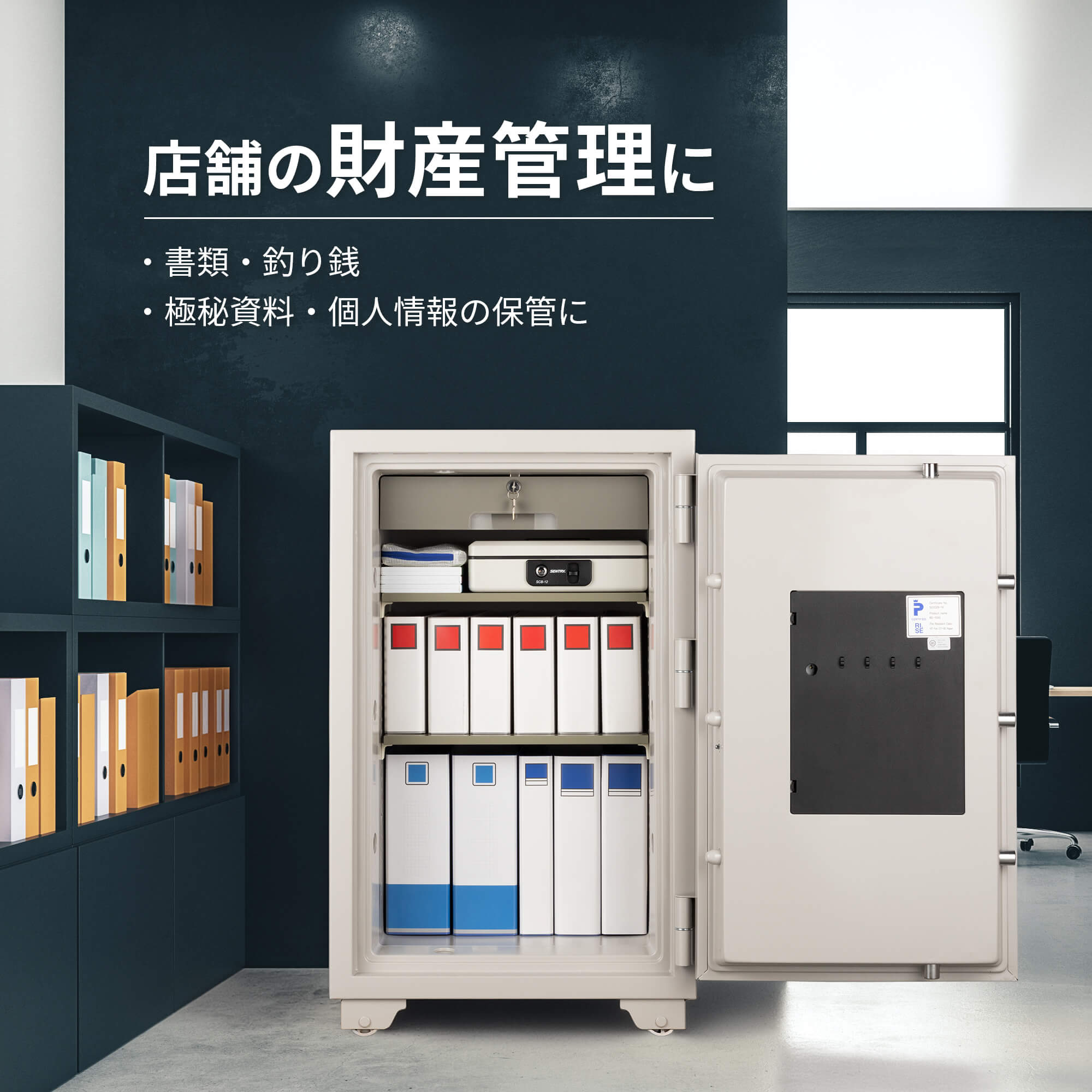 豊富なサイズバリエーションとロックタイプもテンキー式 / 設定変更可能ダイヤル式から選べる業務用金庫。JIS認定およびSP(スウェーデン国立技術研究所)認定製品。