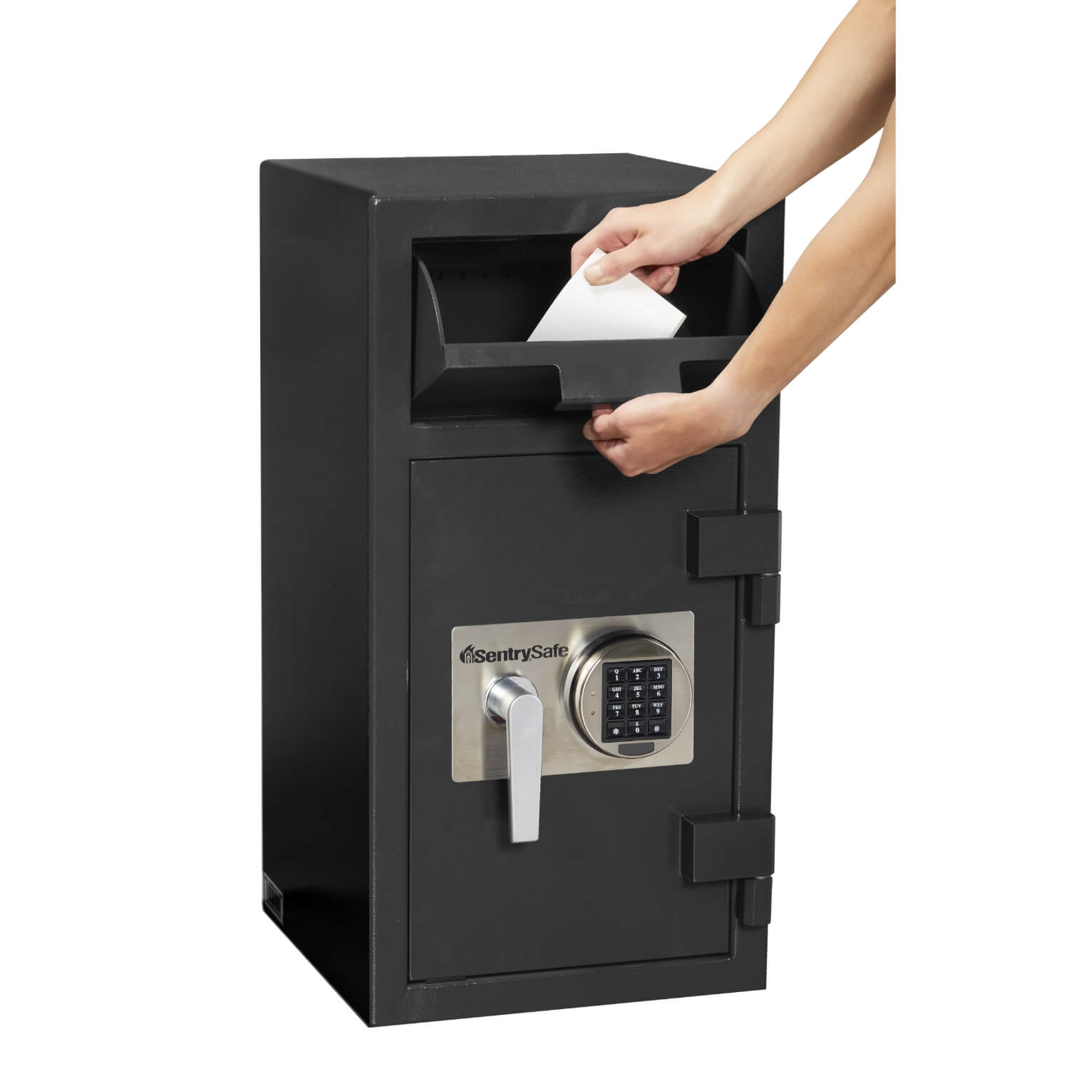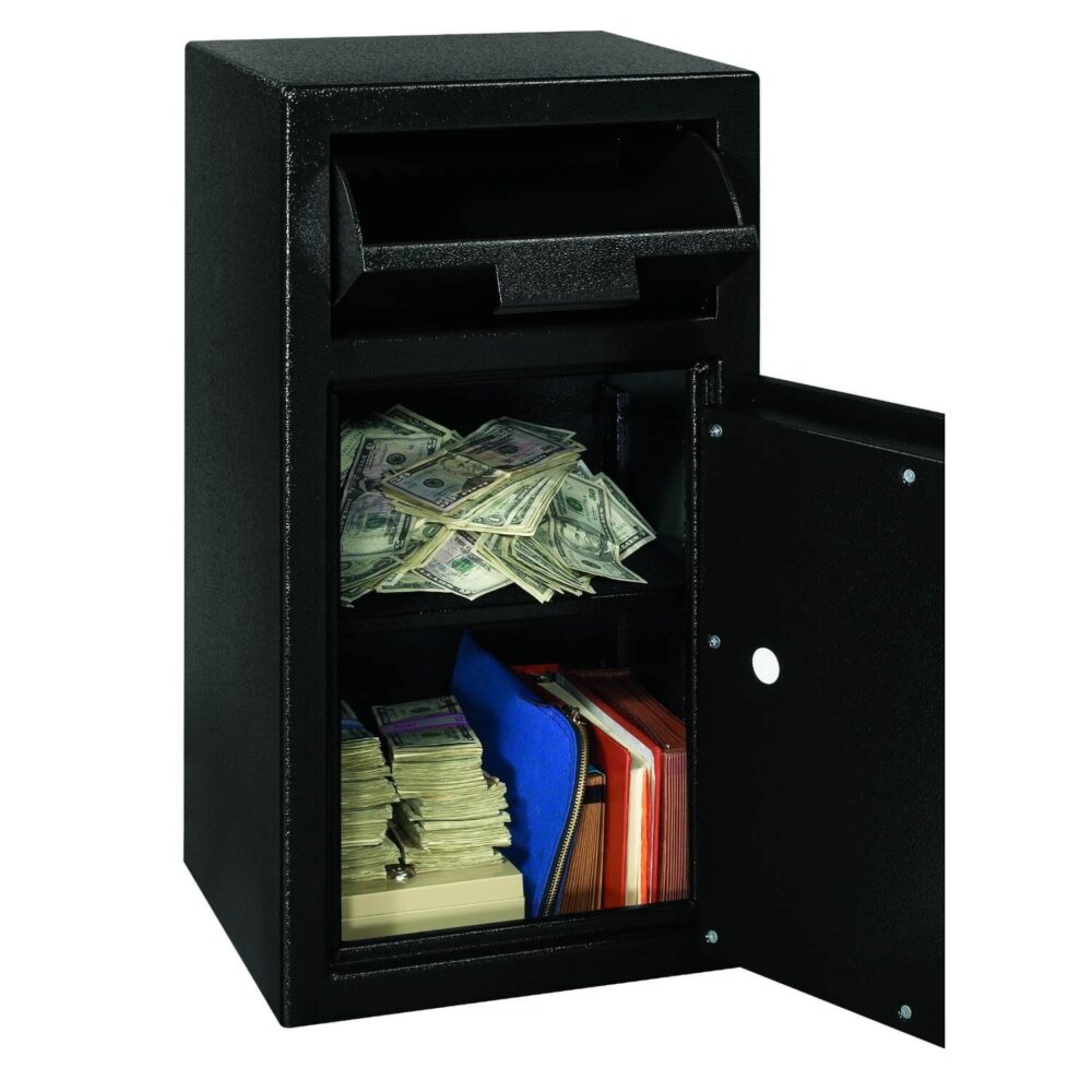 コンビニエンスストアー・バー・レストラン・ガソリンスタンドなどの、夜間営業や人の出入りが多い小売店のセキュリティ対策に最適な投入式金庫。現金・レシートなどを上の投入口から入れるだけで下のスペースに落ち、分厚い鋼鉄のボディが外部から収納物を守ります!お好みの暗証番号を7つまで登録可能なため、複数人での使用にも対応できます。