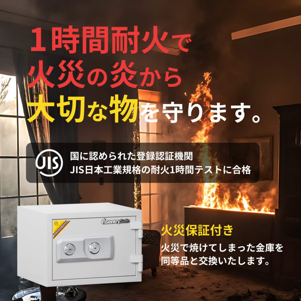 JIS規格の耐火1時間テストに合格。国に認められた登録認証機関によりJISマークの表示を認められているJIS認証製品です。