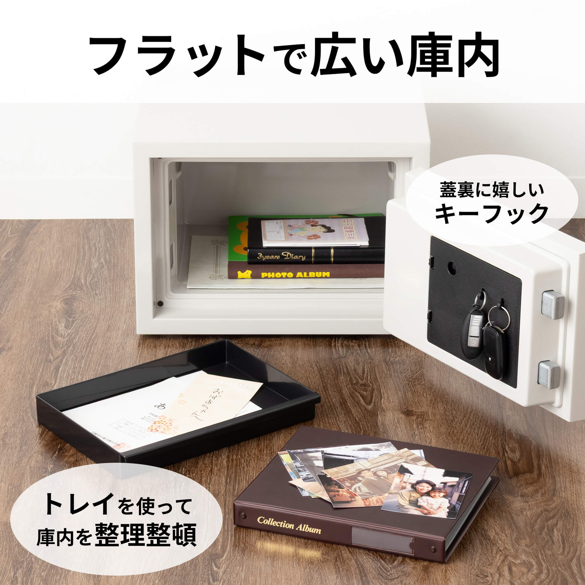 お求めやすい価格設定ながら、JIS認証も取得している安心の品質で、 ご家庭やオフィス・ホテル等、幅広いシーンで活躍する金庫です。