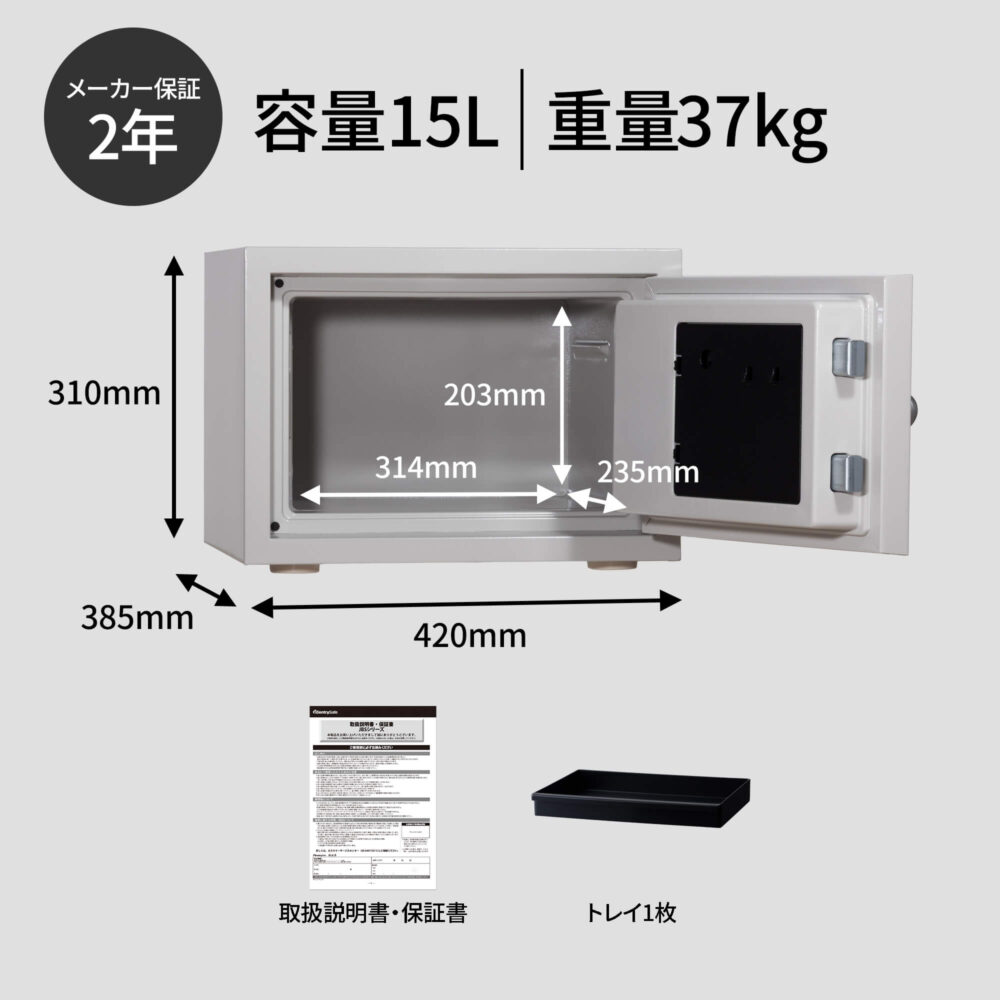 2年間のメーカー保証と、ライフタイムワランティ制度(=万一火災に遭ってしまった際、火災後に同等品との無償交換を保証)が適用されます。