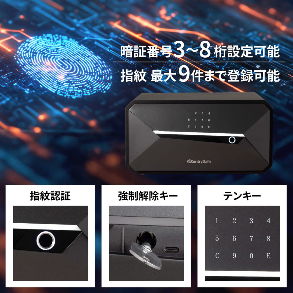 ● 指紋認証、テンキー、強制解錠キーの3種類の方法で解錠が可能