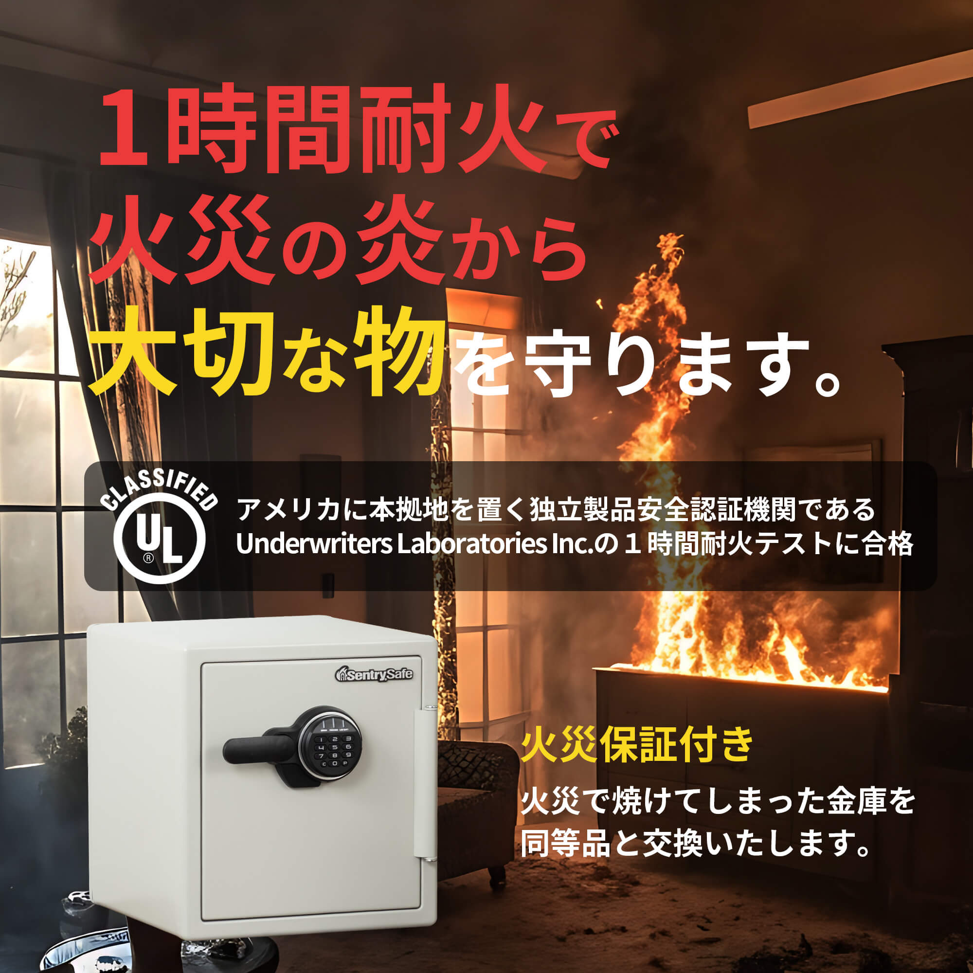さらに1093℃の炉内で20分間急加熱し爆発・破裂しないことが必要なテストにも合格した、タフなつくりの金庫です。