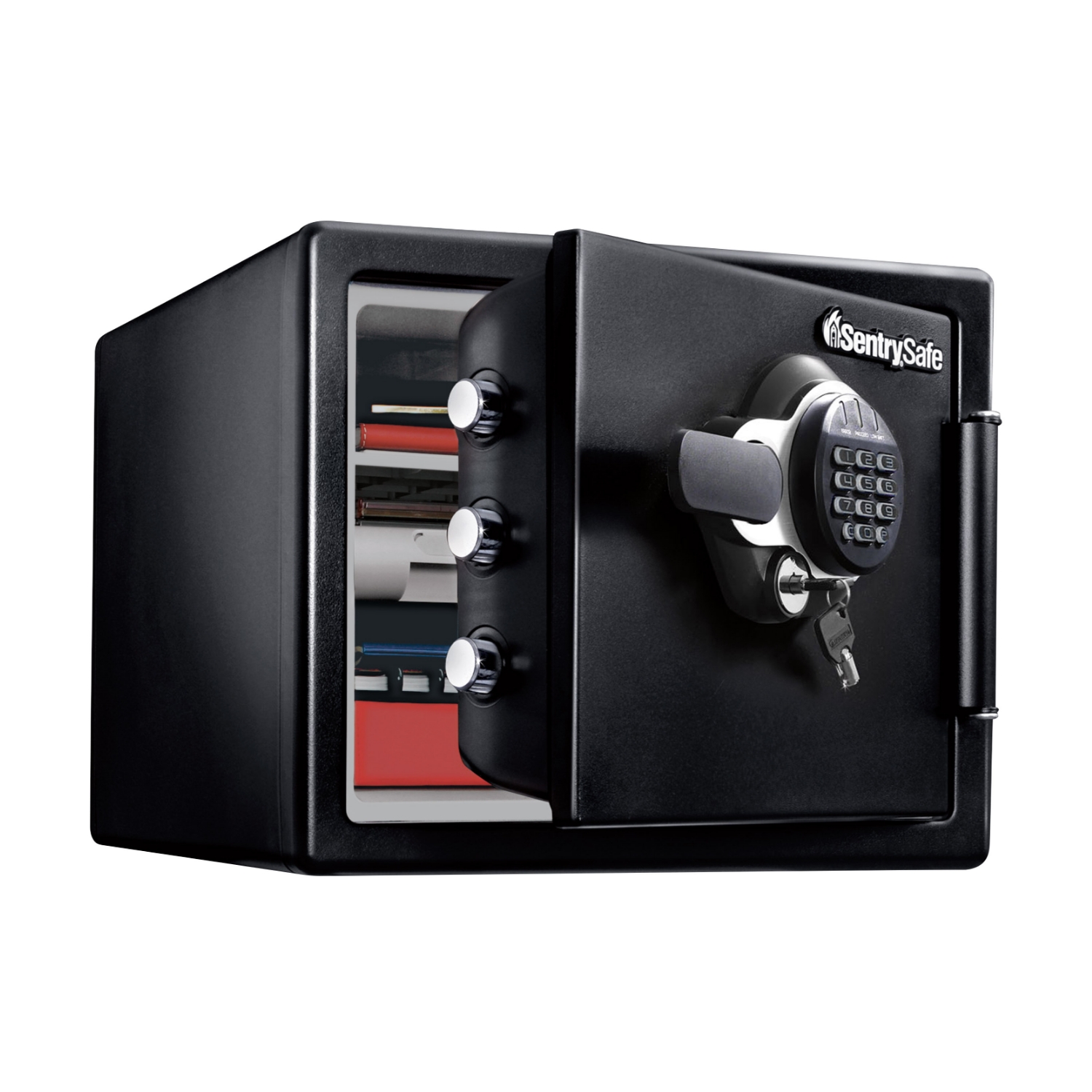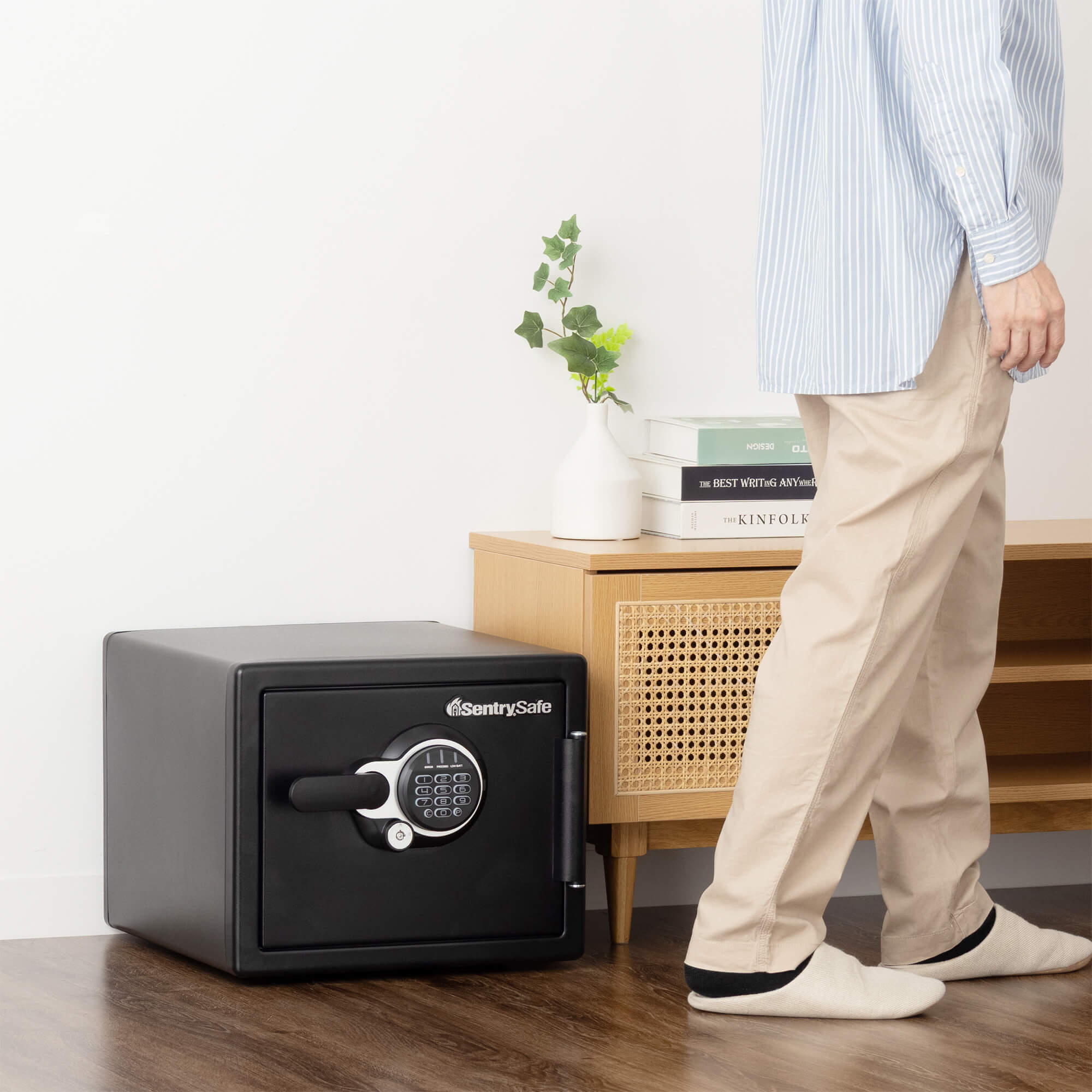 セントリー独自の耐火材「ピロノックス」により、金庫の厚い壁面をスリムにすることに成功。高い耐火性能を備えながらも、A4ファイル収納可能な広々とした庫内を実現しました。