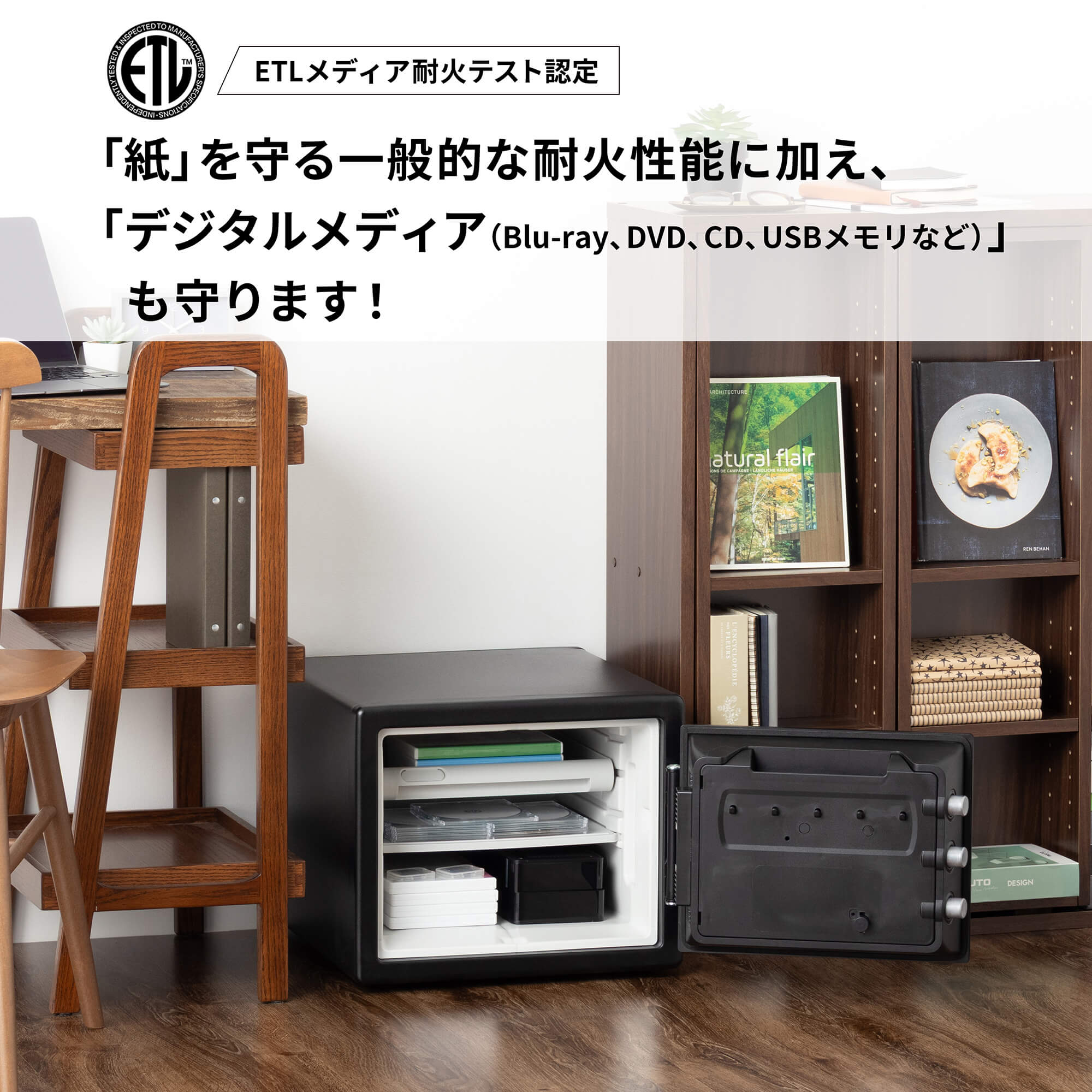 大切な書類などを火災から守ります。 -
