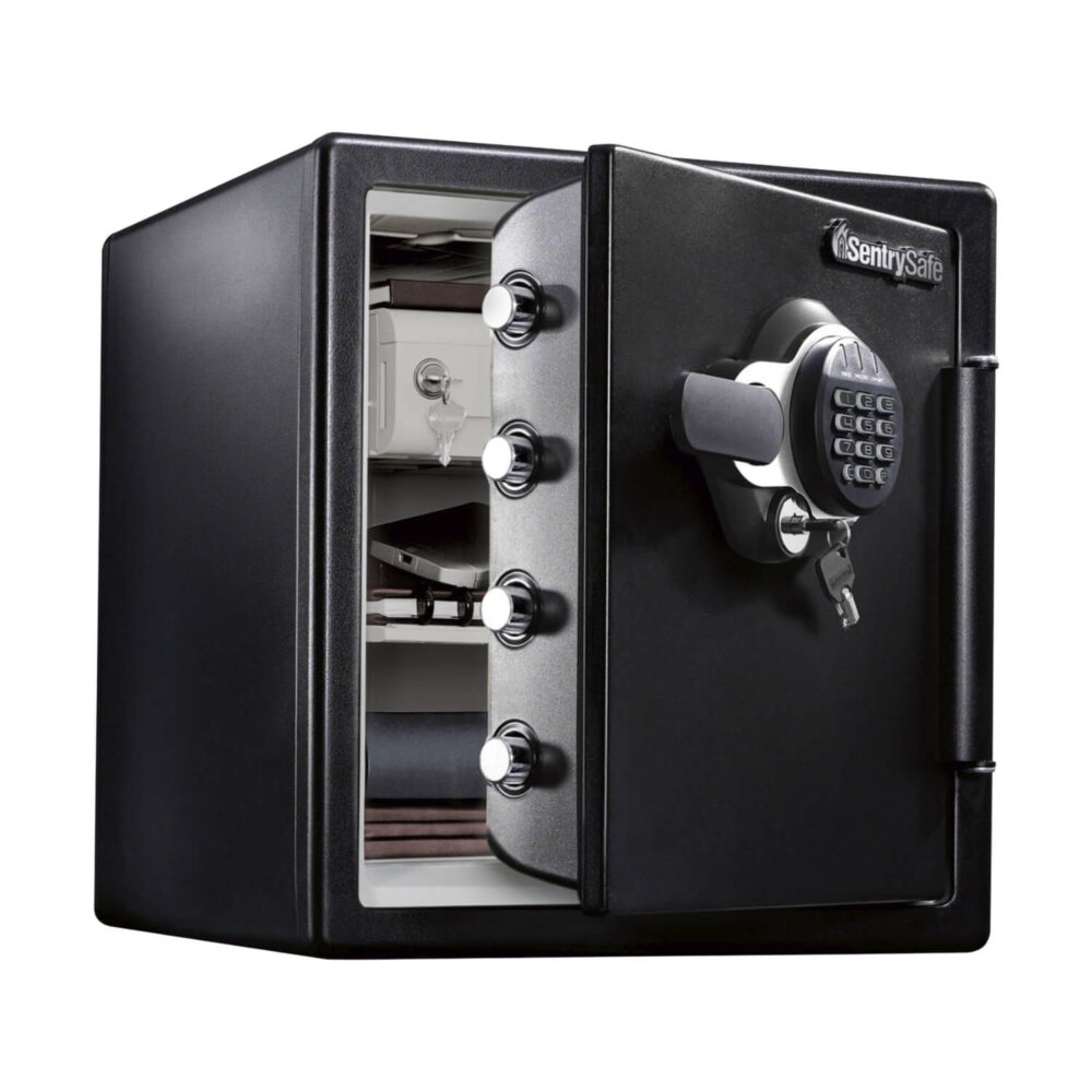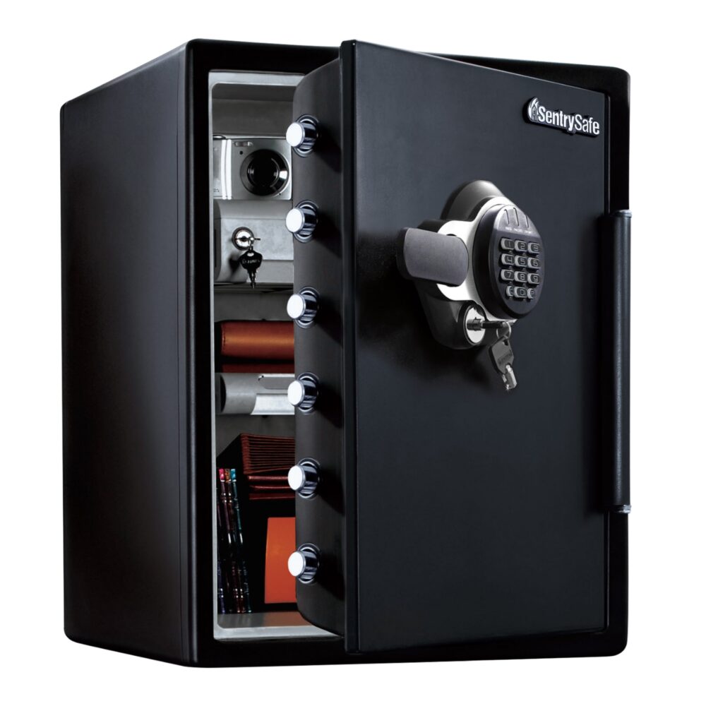 さらに1093℃の炉内で20分間急加熱し爆発・破裂しないことが必要なテストにも合格した、タフなつくりの金庫です。