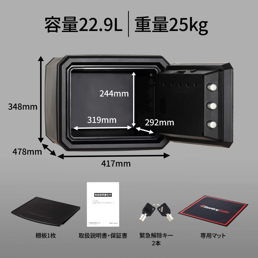 セントリーから、耐火・耐水性能を持つ耐衝撃性樹脂ボディの金庫、登場。