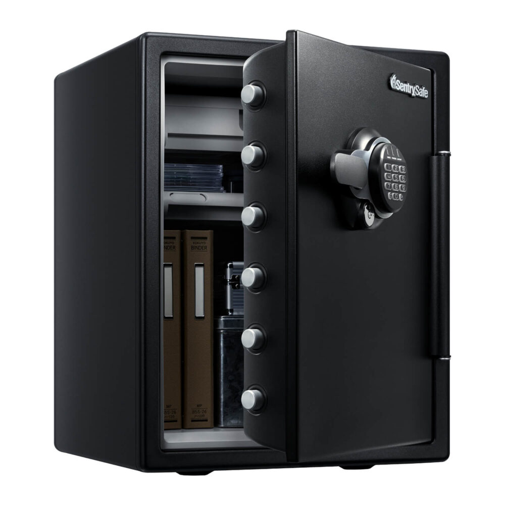 さらに1093℃の炉内で20分間急加熱し爆発・破裂しないことが必要なテストにも合格した、タフなつくりの金庫です。大切な書類などを火災から守ります。 -