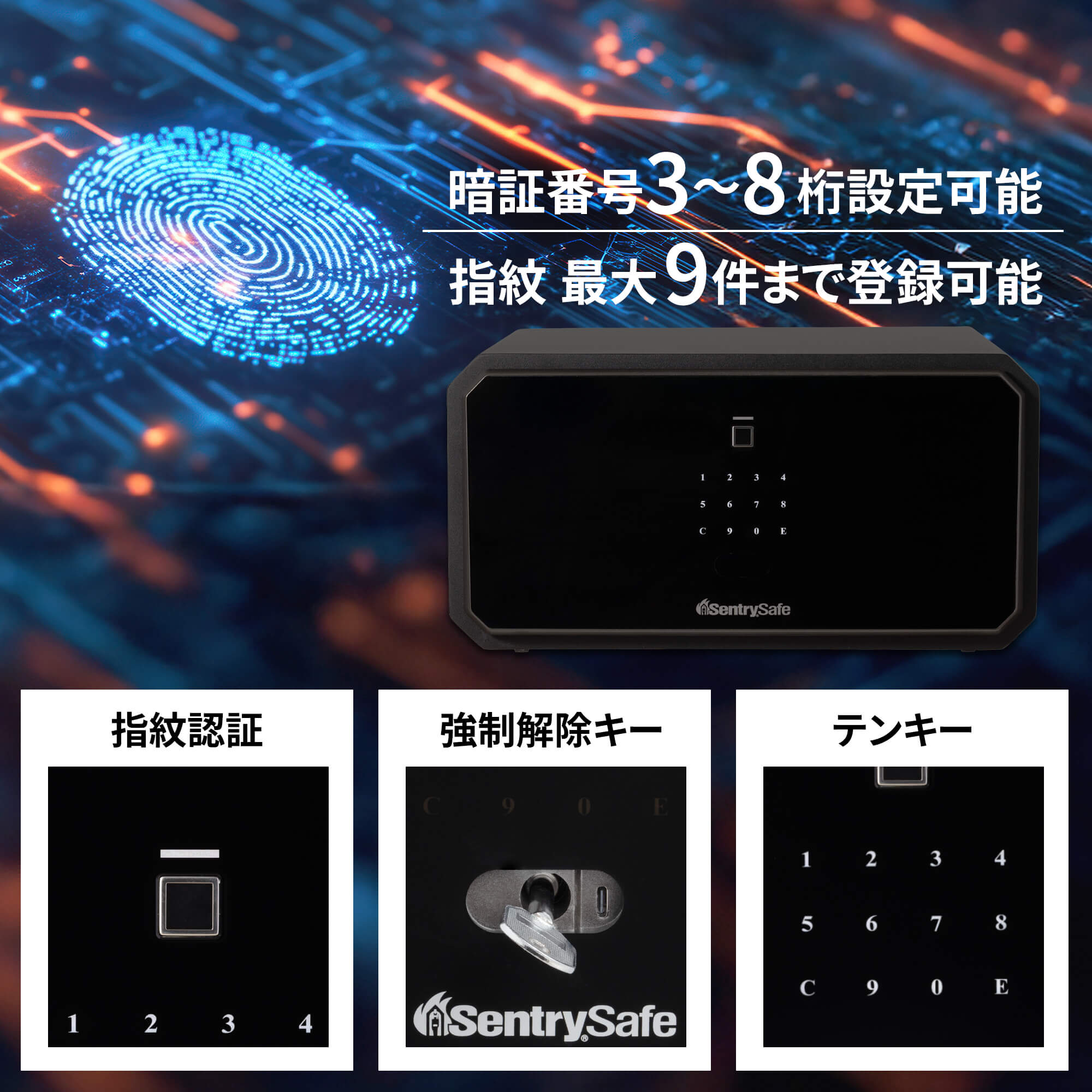● 指紋認証、テンキー、強制解錠キーの3種類の方法で解錠が可能